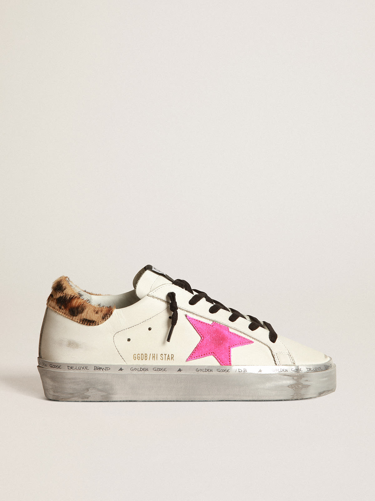 Hi Star sneakers with fuchsia star and leopard print heel tab Very well made.
