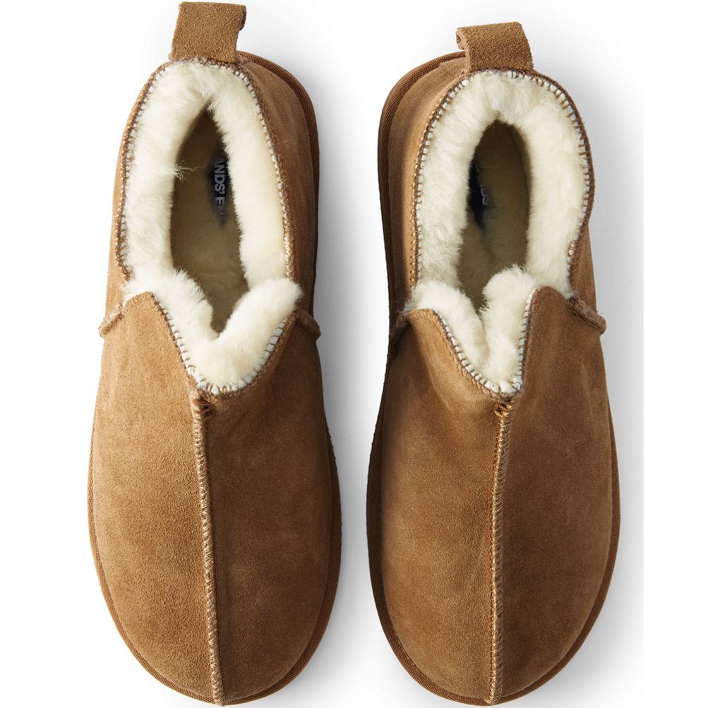 Men s Suede Leather Fuzzy Shearling Bootie Slippers Lands End Very well made.