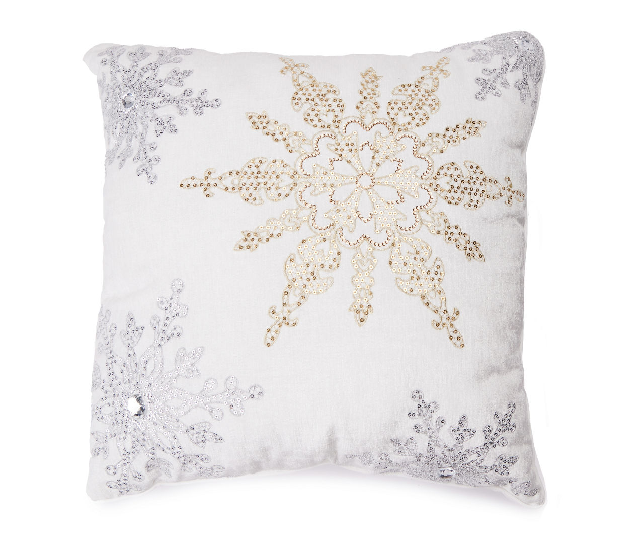 Big Lots White Gold Embellished Snowflake Square Throw Pillow Very well made.