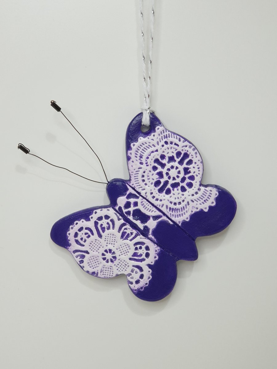 Mothers Day gift purple butterfly clay hanging Folksy Very well made.