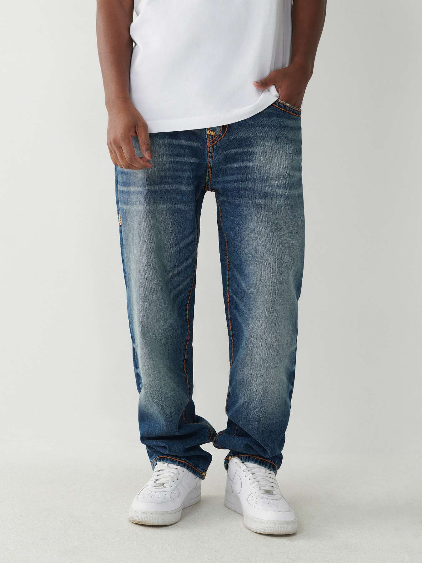 TRUE RELIGION Bobby Super T Blue Jeans Men s 36x34 Straight Leg Thick Stitch USA Very well made.