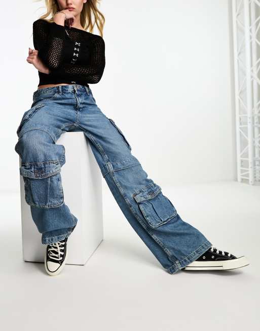 Bershka multipocket cargo jeans in indigo wash Very well made.