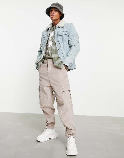 ASOS DESIGN denim jacket with fleece lining in light wash Very well made.