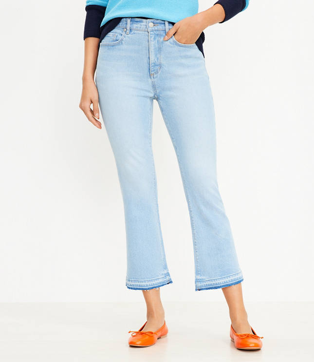 Let Down Hem High Rise Kick Crop Jeans in Vivid Light Indigo Wash Very well made.