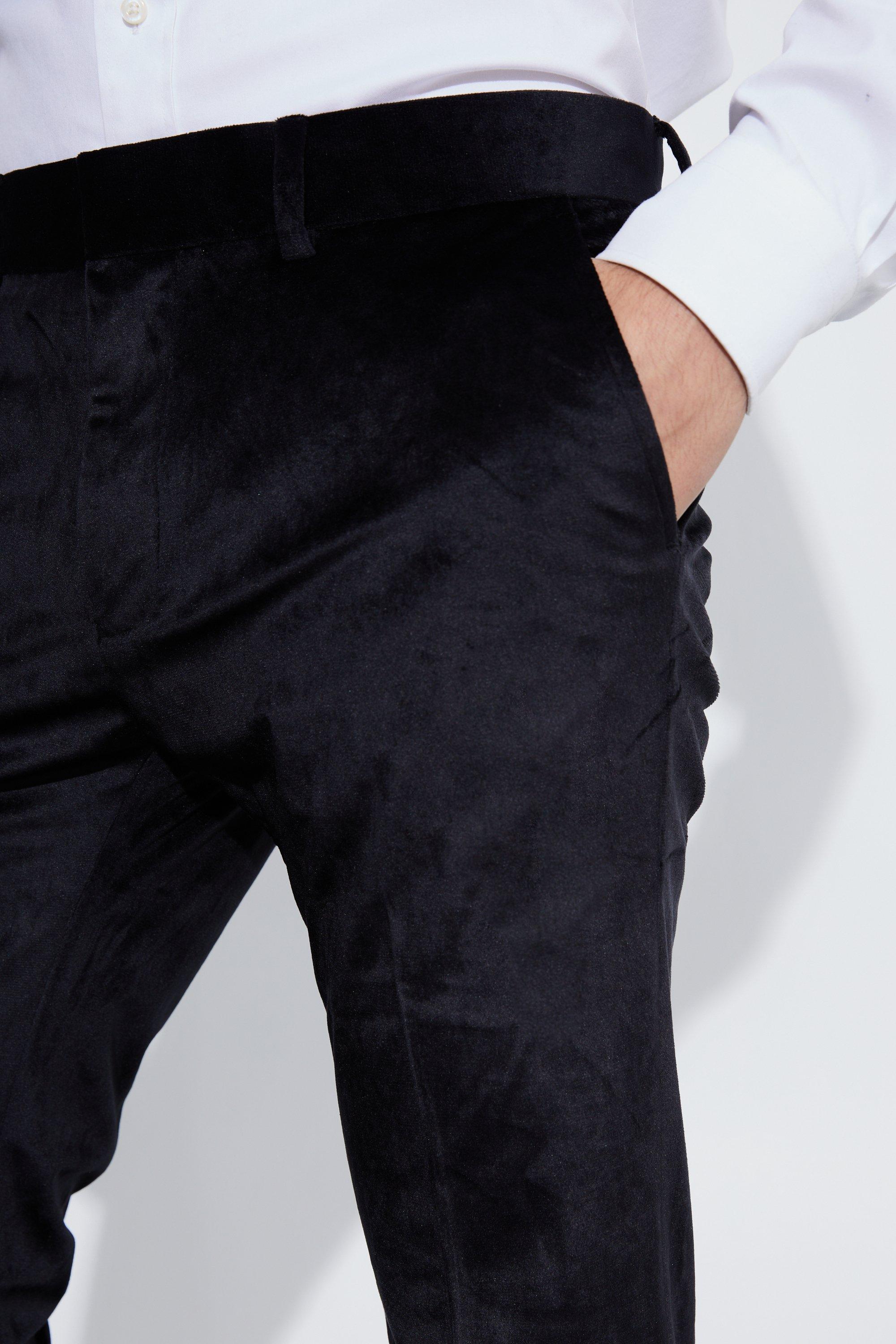 Men s Skinny Velvet Suit Trousers Boohoo UK Very well made.
