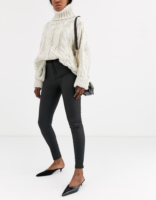 Topshop Joni skinny jeans in coated black Very well made.