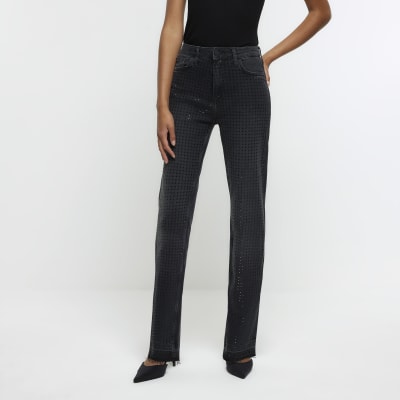 Black slim fit embellished jeans River Island Very well made.