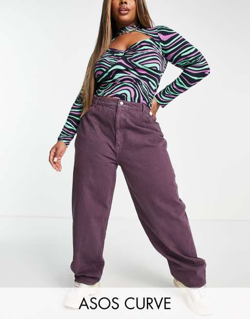 ASOS DESIGN Curve premium cotton blend super slouchy mom jean in purple PURPLE Very well made.