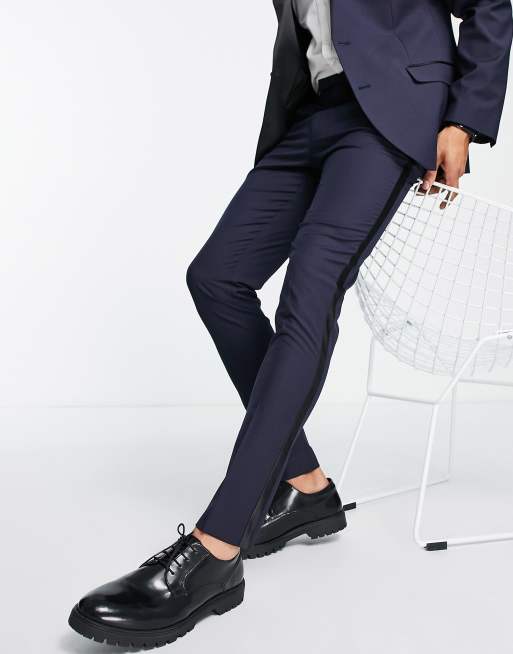 ASOS DESIGN super skinny tuxedo trousers in navy with satin side Very well made.