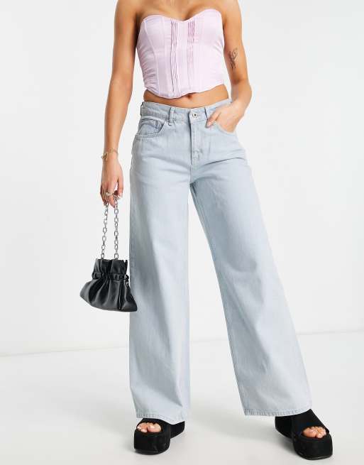 The Ragged Priest low rise wide leg skater jeans in stone wash denim Very well made.