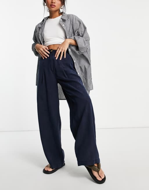ASOS DESIGN Petite high waist wide leg trouser in navy co ord Very well made.