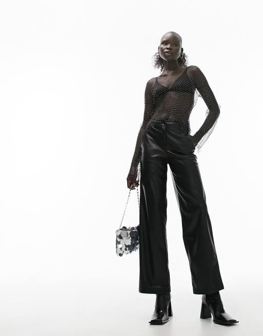 Topshop Petite faux leather wide leg trouser in black ASOS Very well made.