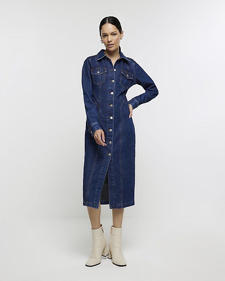 Blue denim midi shirt dress Very well made.