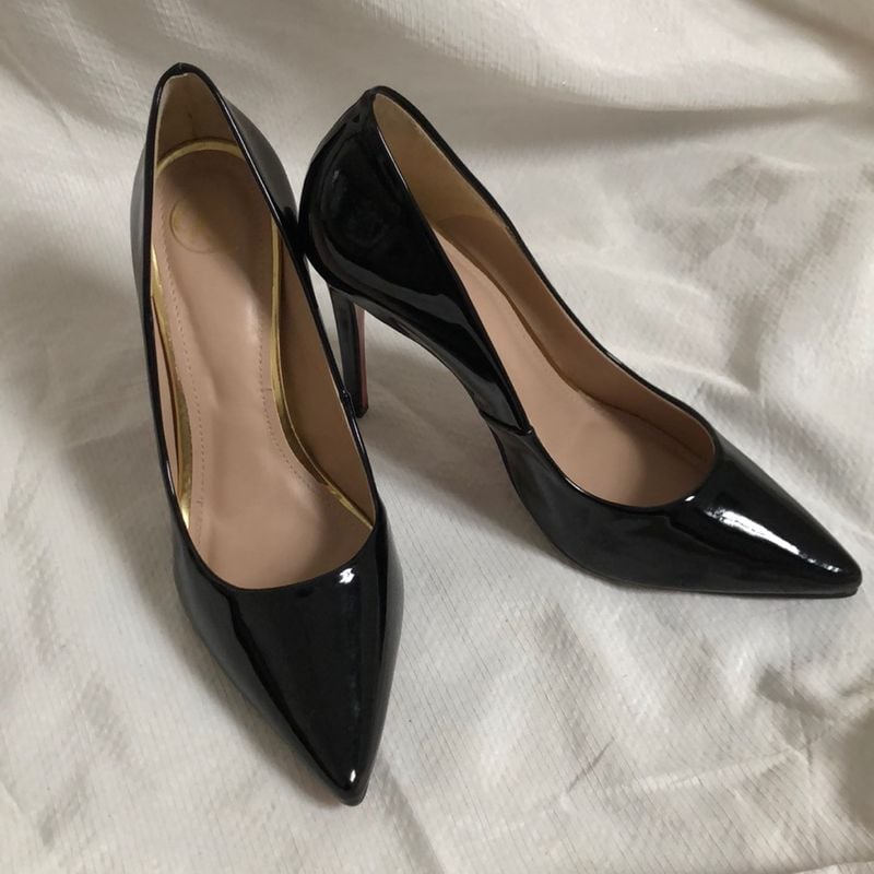Scarpin Verniz Preto Sola Vermelha Sapato Feminino Usado Very well made.