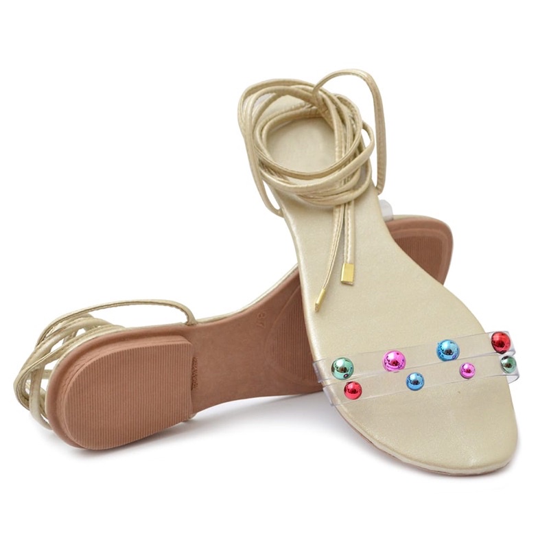 Sand lia Feminina Amarrar Rasteira Pedrinhas Rasteirinha Pedras Coloridas Promo o Very well made.