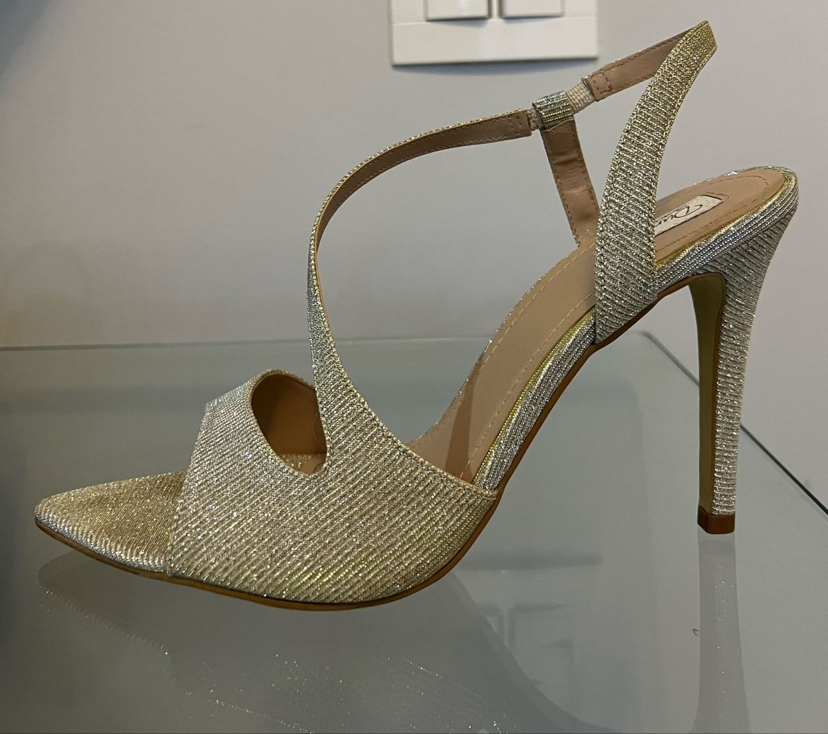 Sand lia Festa Bico Folha Dourada Salto Alto Usada Uma nica Vez Very well made.