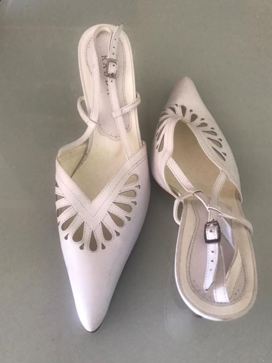Sapato Branco Bico Fino Aberto Atr s Tem 8 Cm Salto Sapato Very well made.