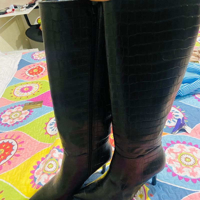 Bota Preta Cano Longo Salto Fino Bota Feminina Besni Nunca Usado Very well made.
