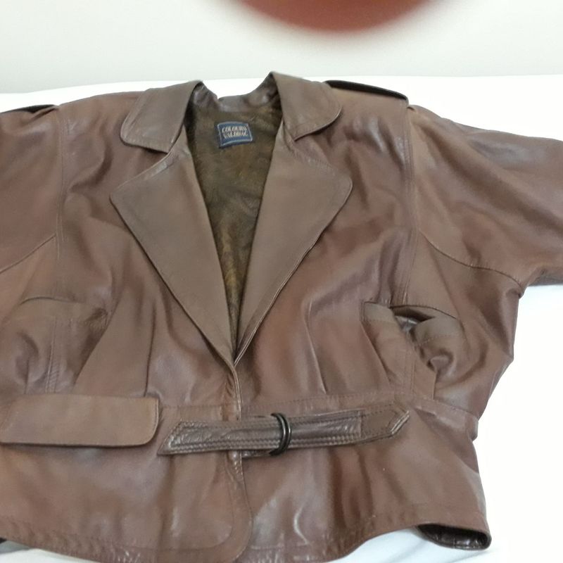 Casaco de Couro Leg timo de Pelica Marron Casaco Feminino Very well made.