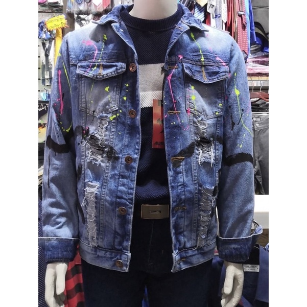 Jaqueta Jeans Masculina rasgada Shopee Brasil Very well made.