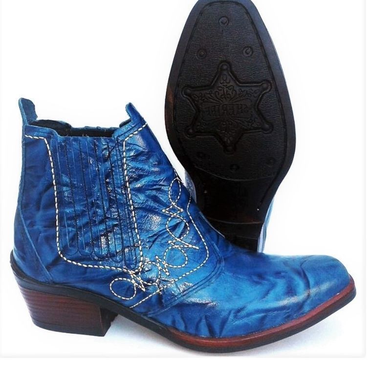 Bota Country Azul Estilo Cowboy Cavalgada Festa de Rodeio Botina Very well made.