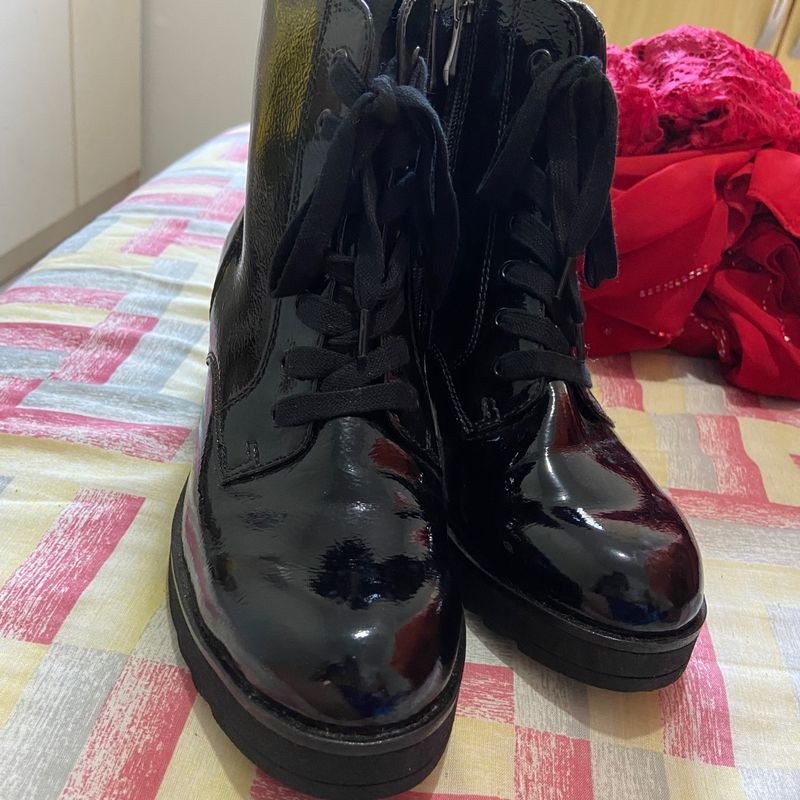 Bota Coturno Feminina Verniz Preta com Salto SAPATO BRANCO CIA Very well made.