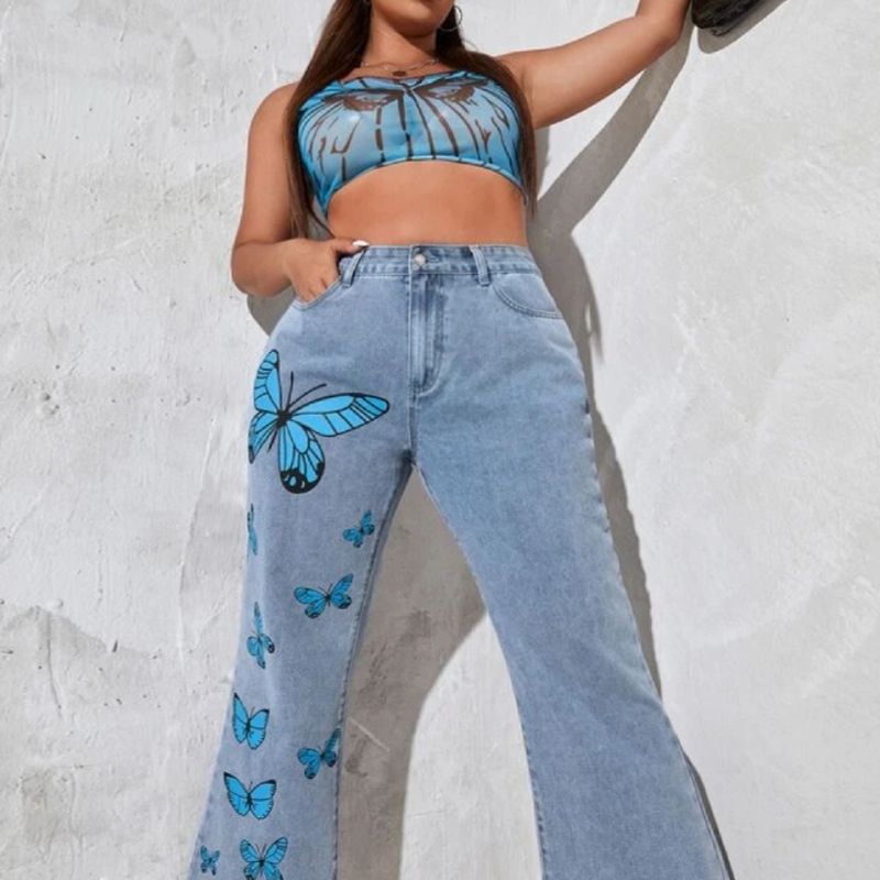 Cal a Jeans Flare Boca de Sino com Borboletas Cal a Feminina Very well made.