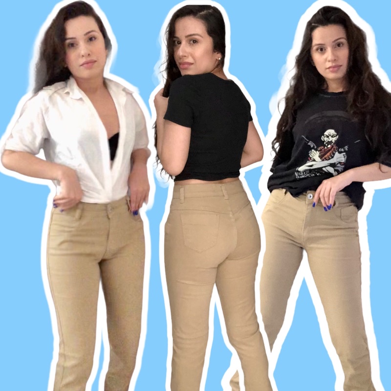 Cal a Skinny Jeans Feminina com elastano Bege Caqui com lycra Very well made.