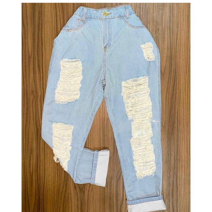 Cal a Jeans Clara Destroyed Rasgada C s Alto alta Moda Gringa Feminina Tamanho 36 Natal Ano Novo Rev illon Very well made.