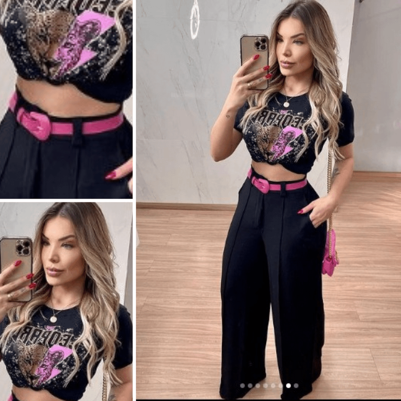 Conjunto Feminino Cal a Pantalona Cropped Cinto Tendencia 2023 Moda Ver o Roupa Feminina Social Cal a Feminina Bella Top Moda Nunca Usado Very well made.