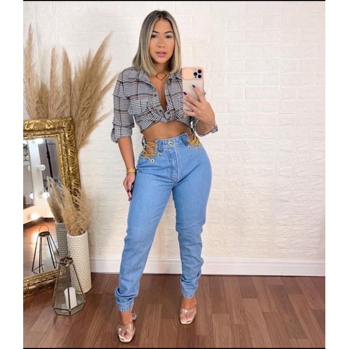 Cal a Jeans Feminina Wide Leg Rasgado Moda Gringa Premium Very well made.