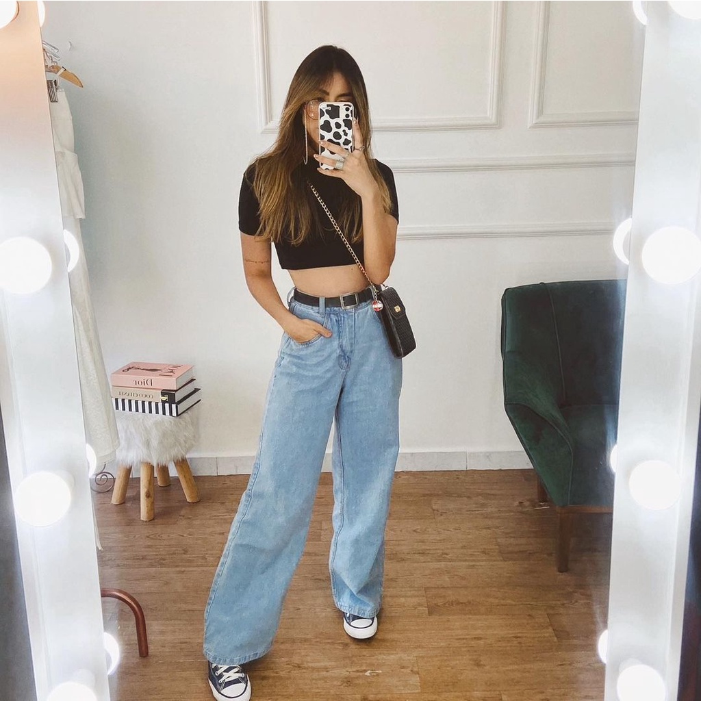Cal a Jeans Feminina Wide Leg Colorida Shopee Brasil Very well made.
