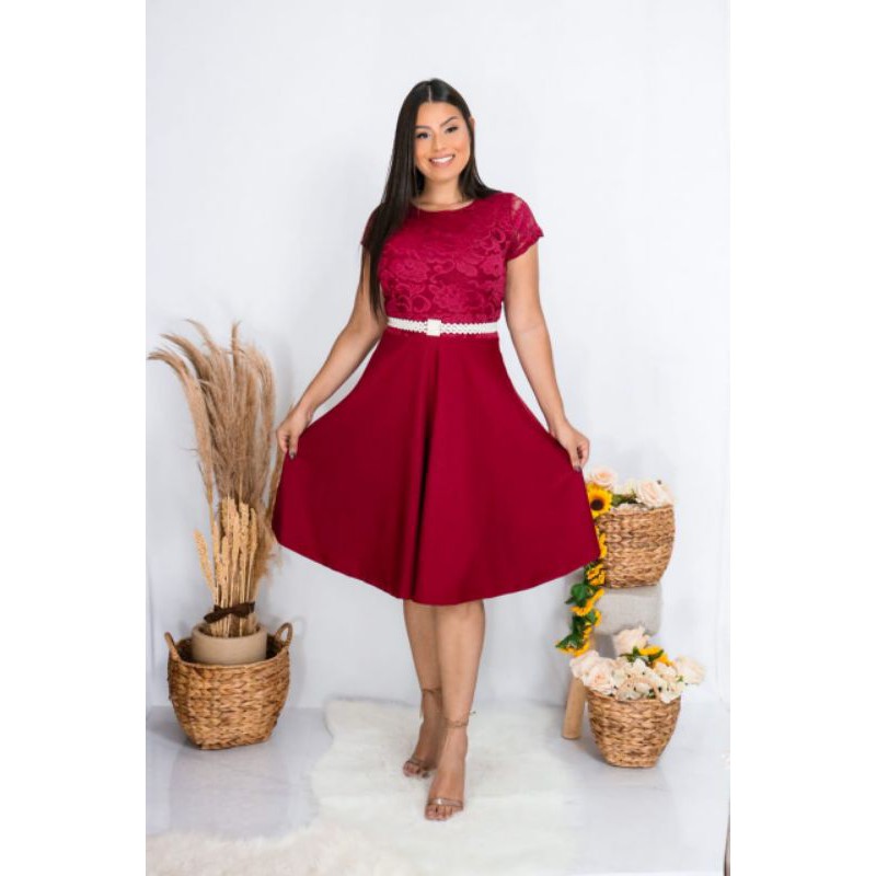 Vestido Curto com Renda Vermelho Bord para Festa Formatura Ou Very well made.
