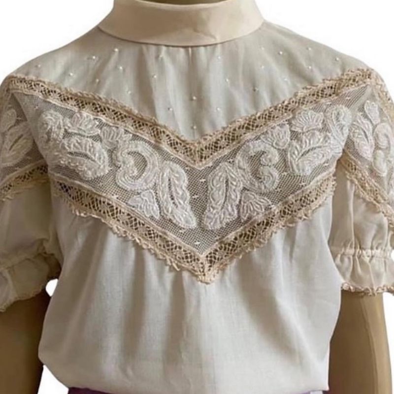 Um Encanto Essa Blusa Vintage com Renda Renascen a e Tule com Very well made.