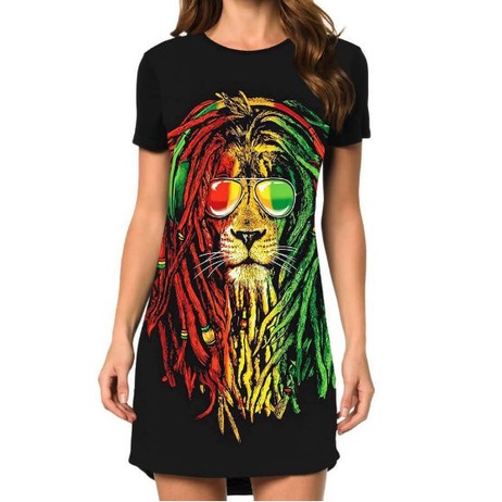 Vestido Manga Curta Full Print Le o Do Reggae Very well made.