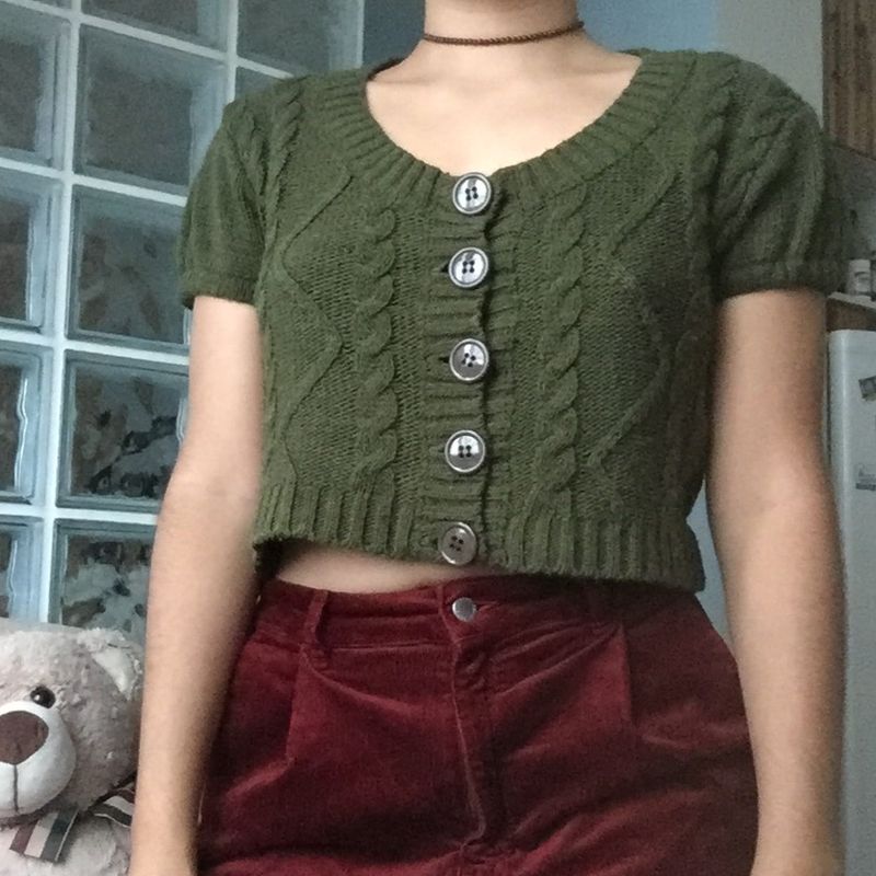 Corp es Tricot Verde Manga Bufante Blusa Feminina C A Nunca Very well made.