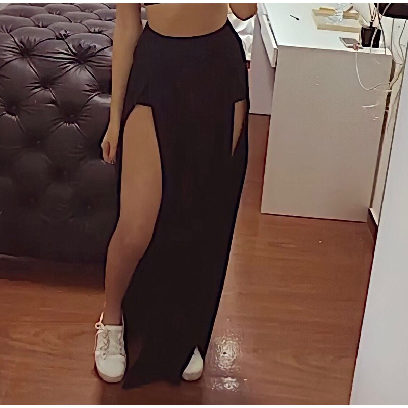 short saia longa de tule preto transparente com duas fendas estilo Very well made.