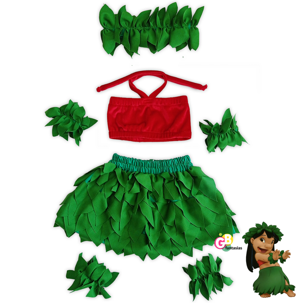 FANTASIA HAVAIANA VERDE E VERMELHO LILO INFANTIL JUVENIL Very well made.