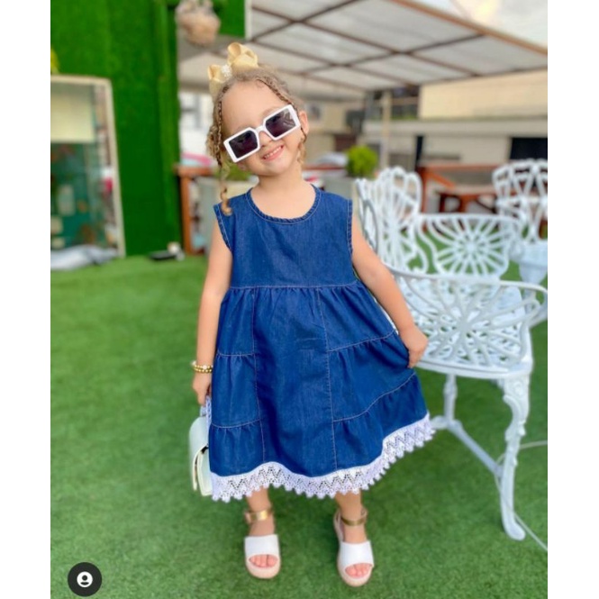 Vestido Jeans Infantil Feminino Evas com La o Etiqueta Kids Very well made.