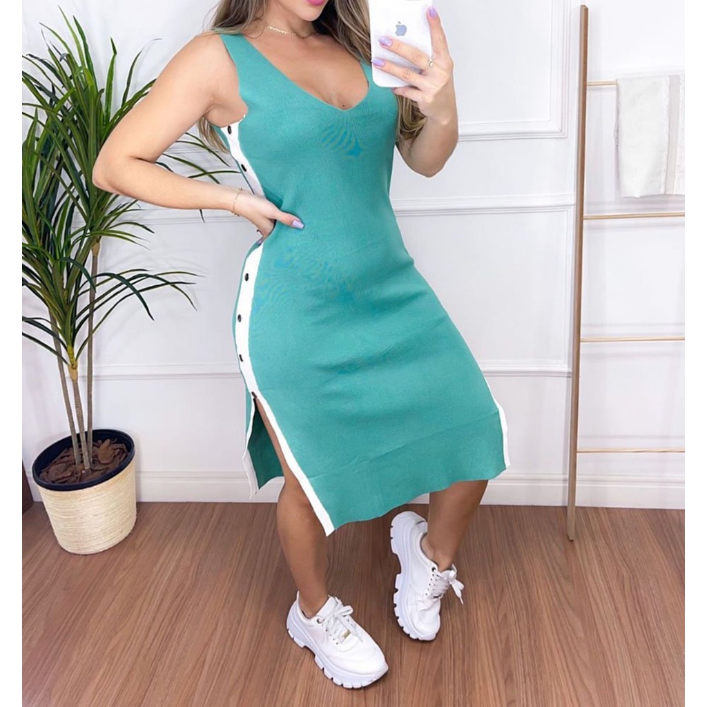 Vestido Feminino Midi Tubinho Fenda Lateral Cavado Listra Shopee Very well made.