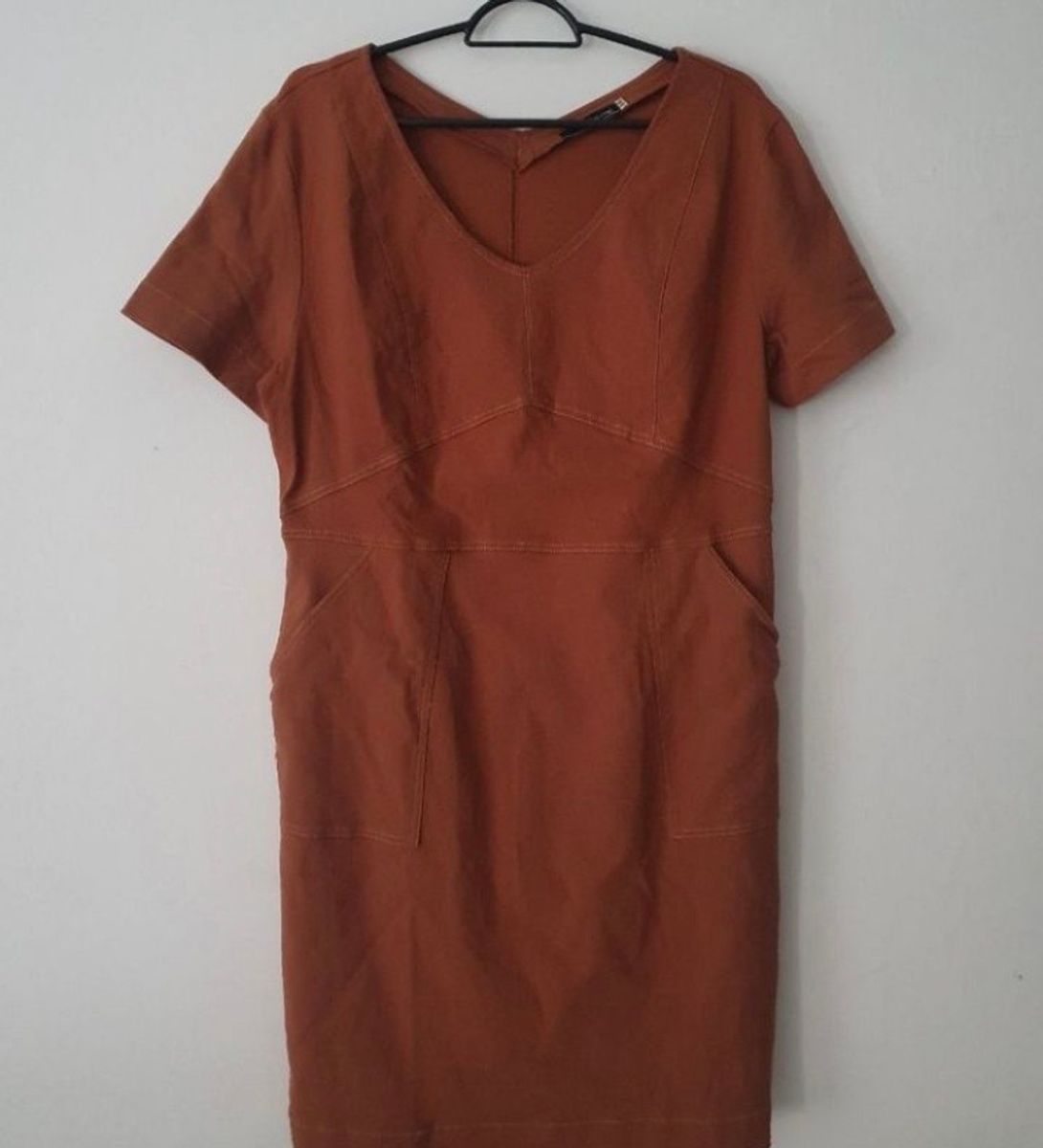 Vestido Alana Canelado Caramelo Tubinho com bolsos Very well made.