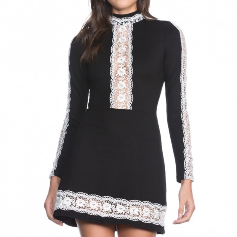 Vestido Curto com Manga Longa Amaro Ponto Roma com Guipir Preto Very well made.