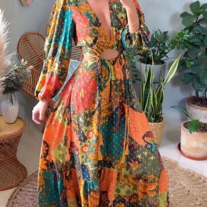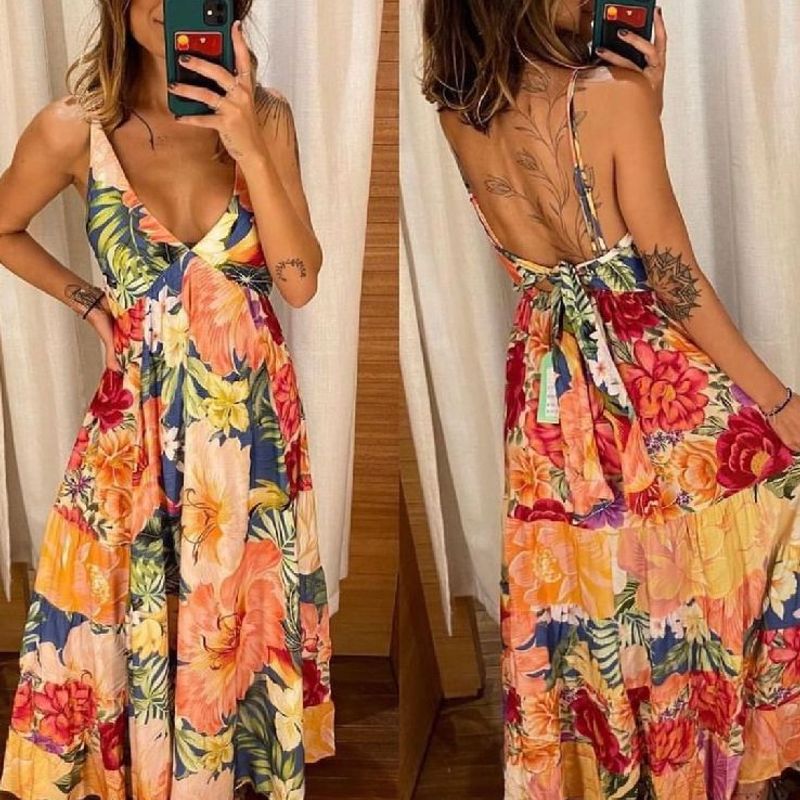 Vestido Longo Cinto Rolot Estampa Patch Mix Visual Rio Very well made.