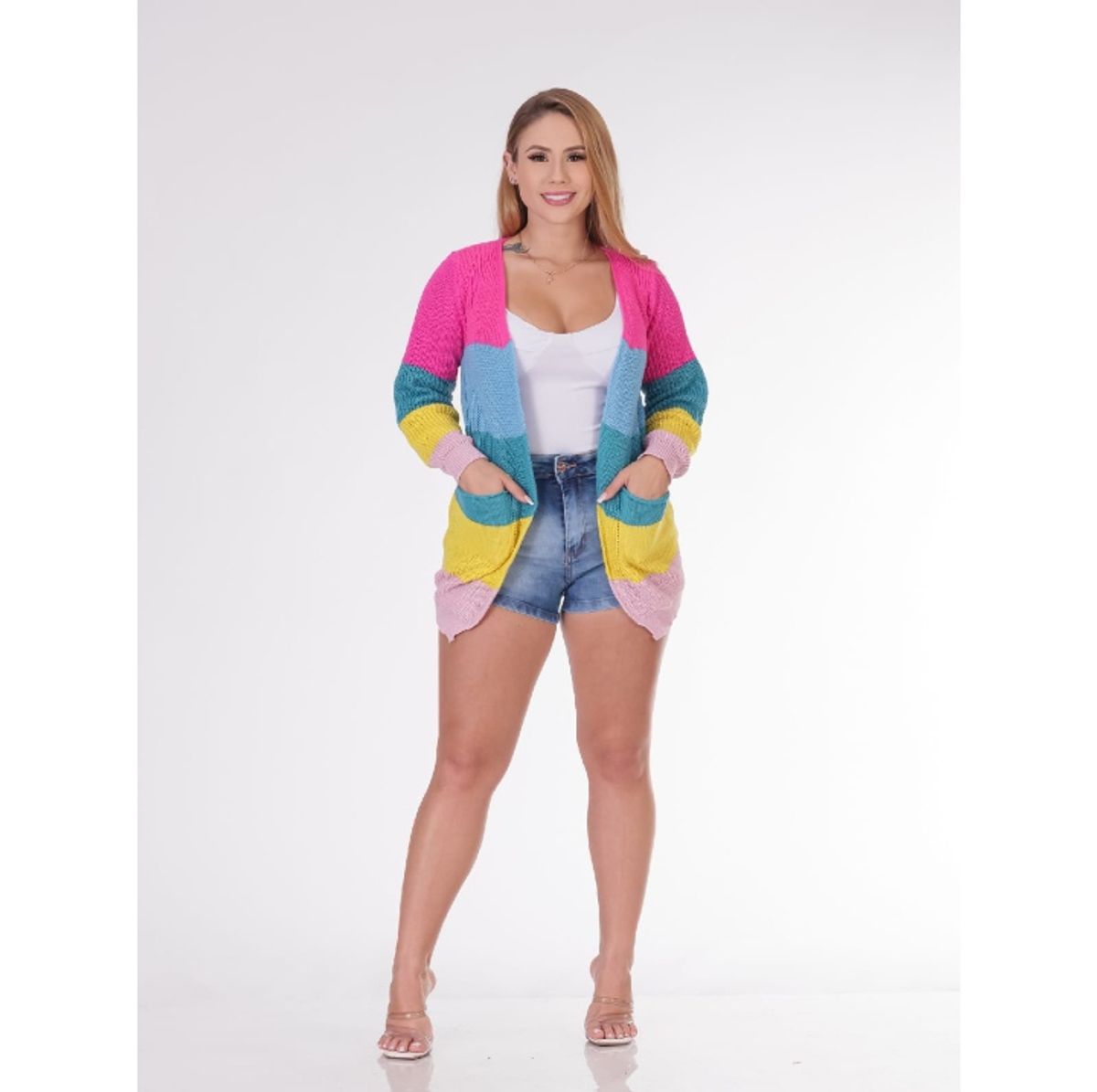 Cardigan Kimono Tricot Colorido Rainbow Arco Iris Tric Belo Very well made.