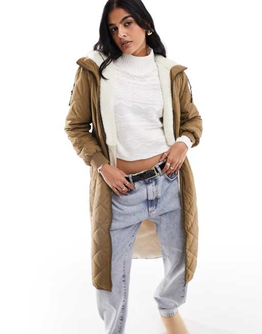 Only quilted longline coat with teddy hood in camel Very well made.