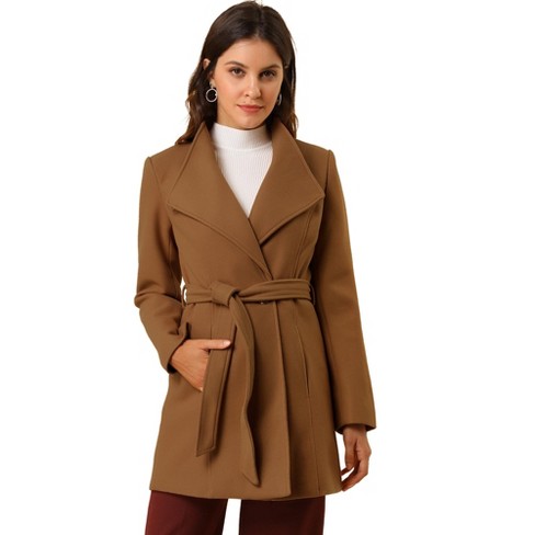 Allegra K Women s Classic Stand Collar Long Sleeve Winter Belted Long Coat Dark Brown X Small Very well made.