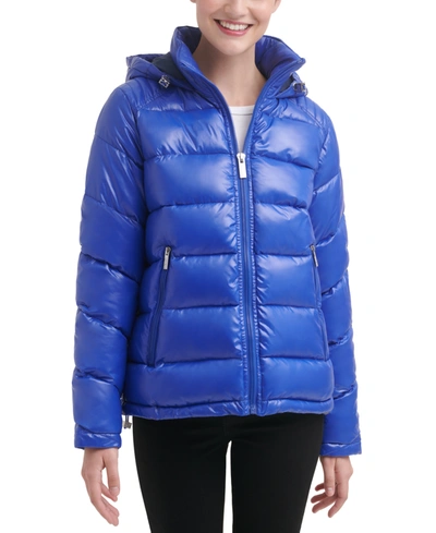 Guess Women s High shine Hooded Puffer Coat In Indigo ModeSens Very well made.