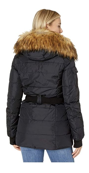 S13 Karlie Belted Down Puffer Coat 340 Sz S Matte Black Faux Fur Very well made.
