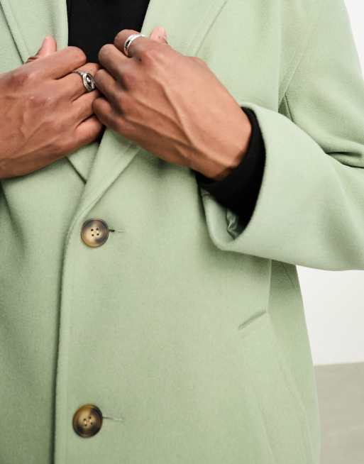 ASOS DESIGN relaxed wool look overcoat in sage green Very well made.