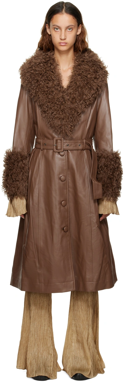 Foxy Leather And Shearling Long Coat In Brown Very well made.